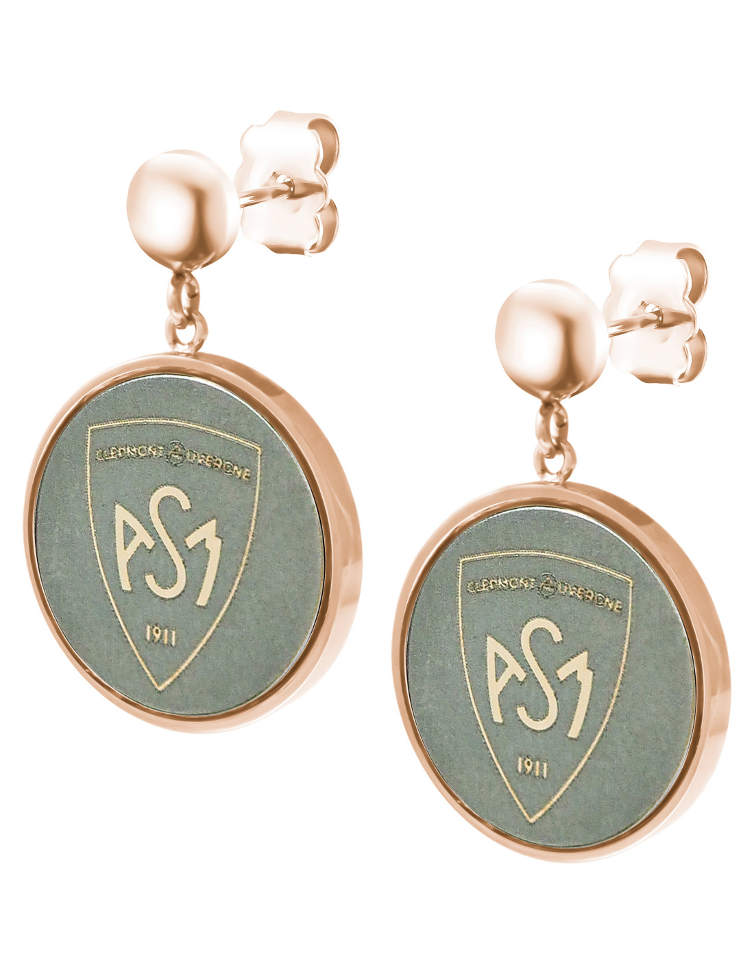 Découvrez les Boucles d'oreilles ASM - acier rosé - Blason ASM - rosé mat , un bijou officiel ASM unique. Fabriqué avec soin, il symbolise votre attachement au club de l'ASM. Parfait pour les supporters et supportrices.
